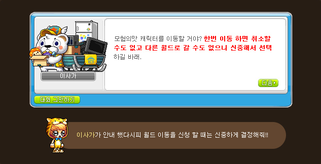 - When World Leaping from Burning World, items in the cash storage, storage, and Maple Auction will not be moved.