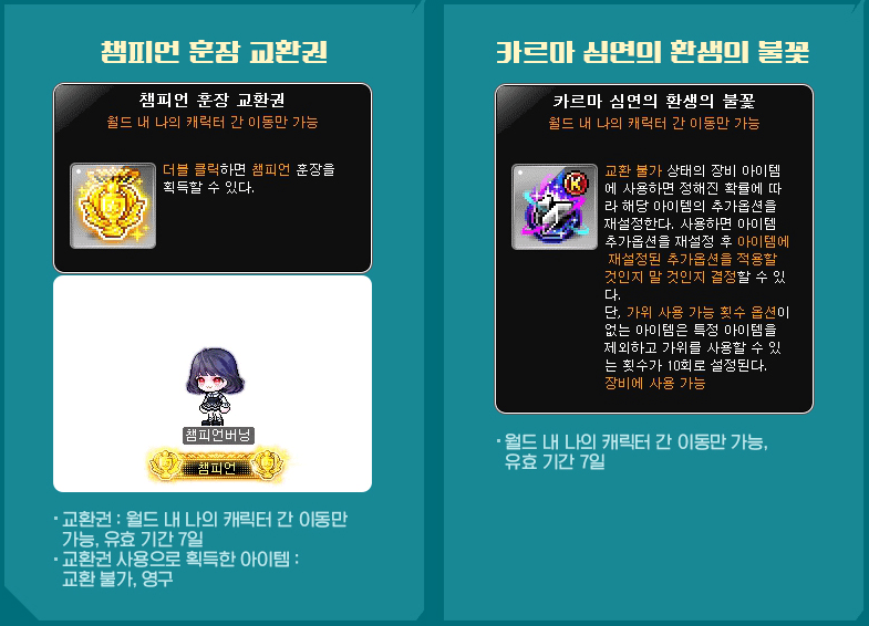 During this time, you can freely move your Cash items between characters, regardless of cash restrictions.