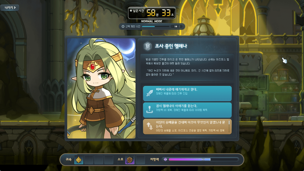At the top, you’ll see the Mode that you chose, your current number of Content Points, and a bar that represents your Resistance. Below that is the Stage Selection, where you must complete stages along the path to reach the Goal. At the bottom are the Dungeon Items that you currently have and can consume.