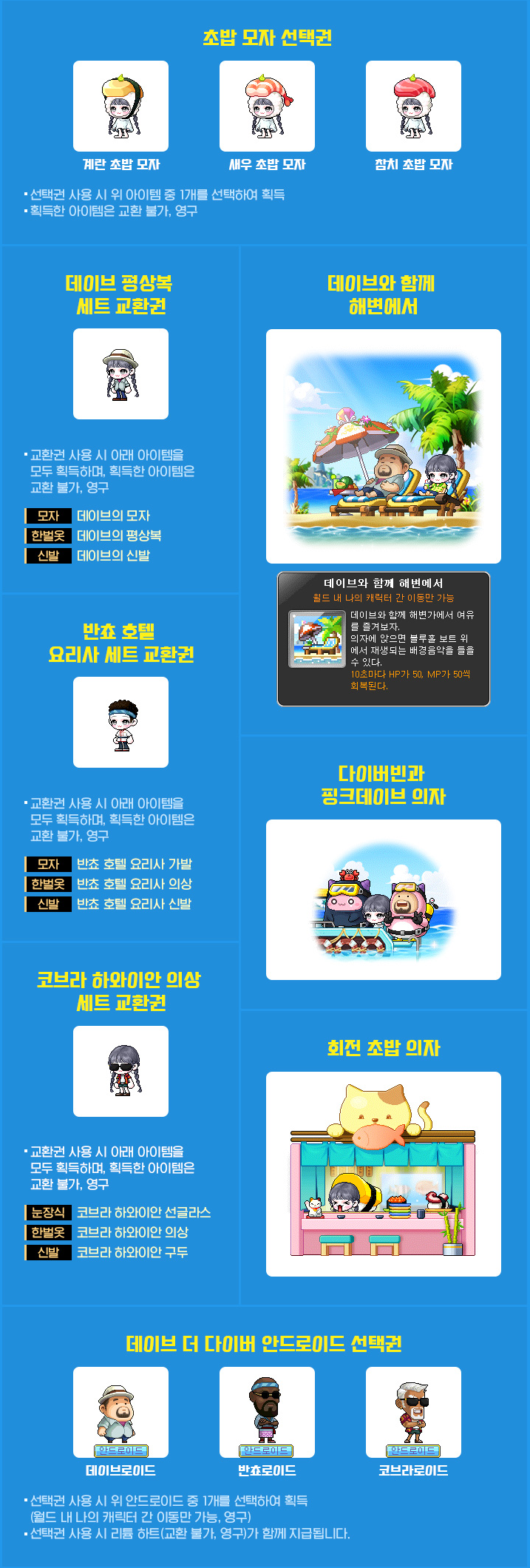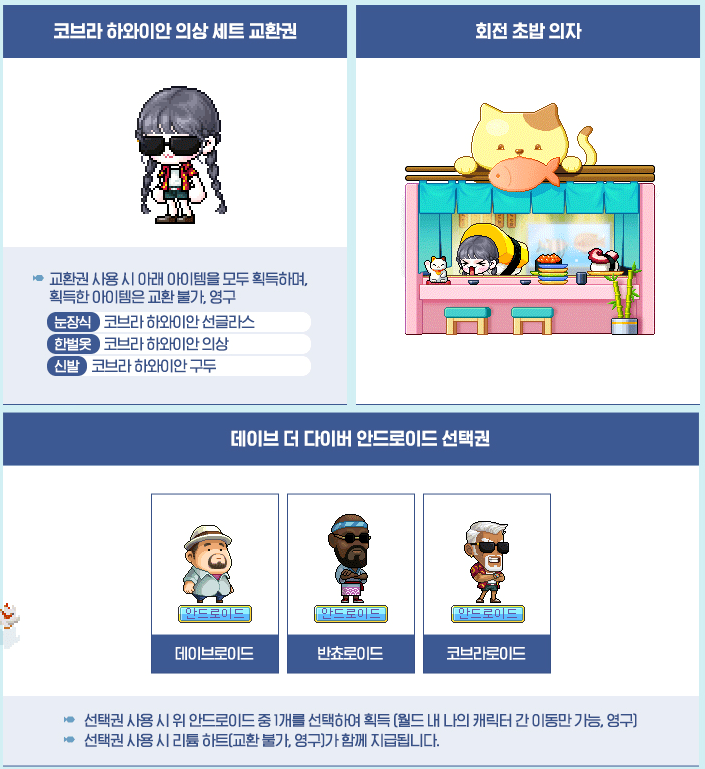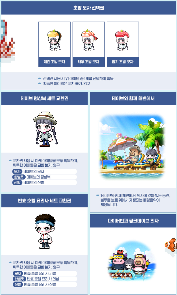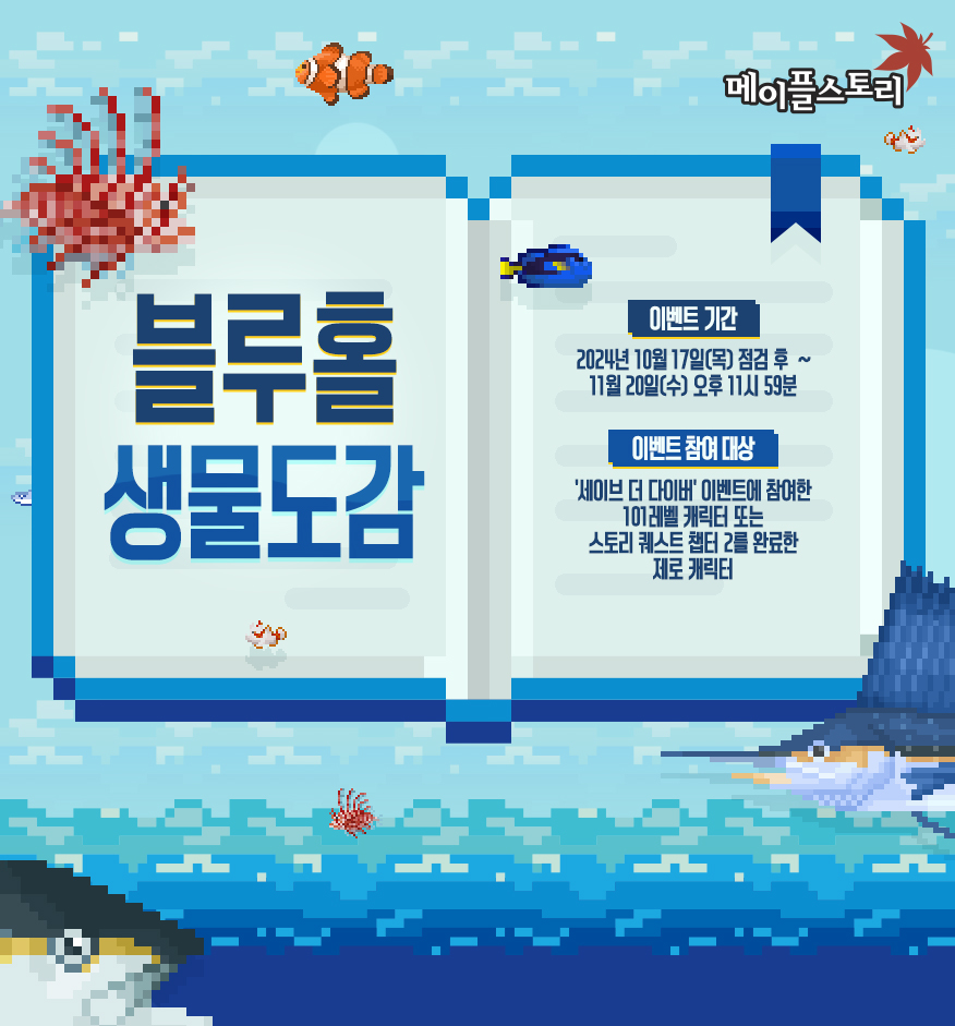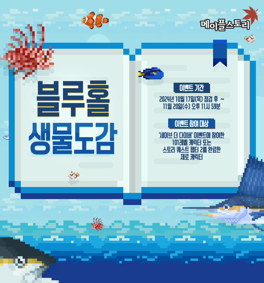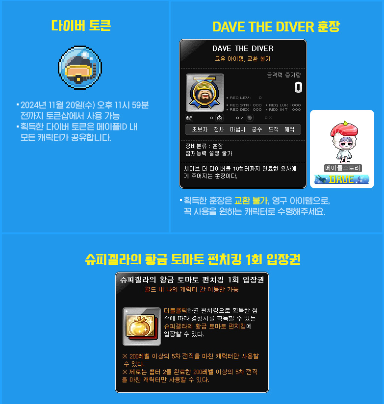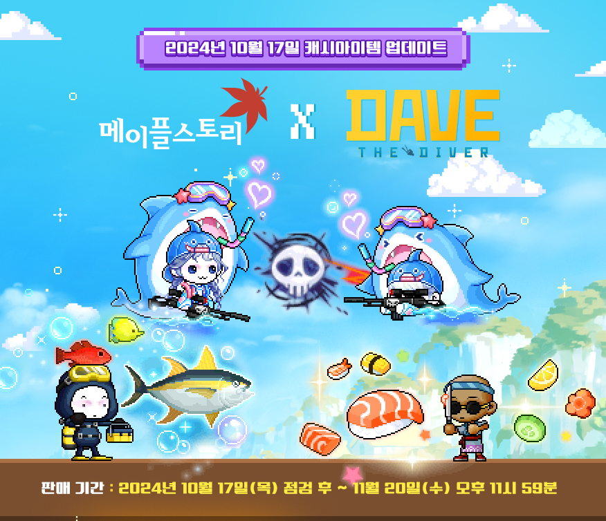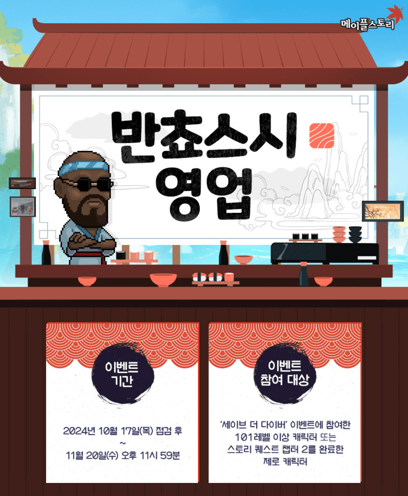 The third fall update, featuring the new roguelike content that provides mesos, Azmoth Canyon, as well as the Dave the Diver collaboration has been released! The Dave the Diver event is really extensive and actually very fun! Might even have to pick up the real game after this.