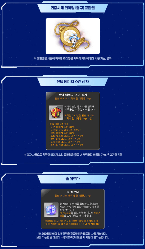 During this time, you can freely move your Cash items between characters, regardless of cash restrictions.