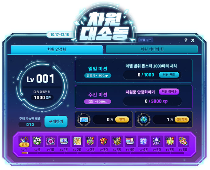 If you resolve the dimensional distortion, you can accumulate your number of daily stabilizations. The number of daily stabilizations can only be accumulated 1 time per day. You can acquire the following rewards based on the number of days.