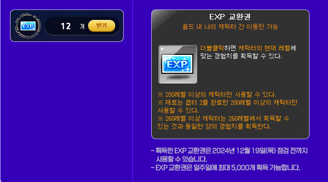 ※ Characters over level 289 that enter the VIP Sauna Room will receive the same amount of experience as a level 289 character.