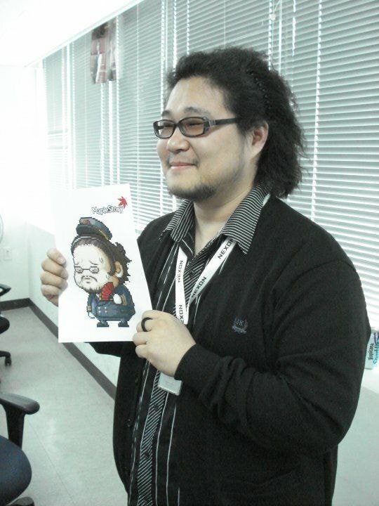 The first person is Kang Daehyun, who previously was the lead of the development team. Currently, he’s the COO of Nexon Korea! The NPC Gaga was based off of him!