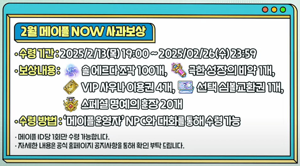 • Maple Island, the Maplestory theme park, will be opening in the first half of 2026 in Lotte World in Seoul, South Korea. There will be one roller coaster and two family attractions. Of course, there will also be special characters, goods, and other experiences.