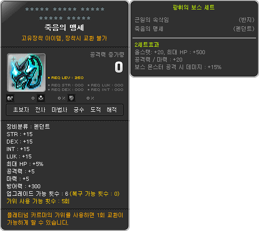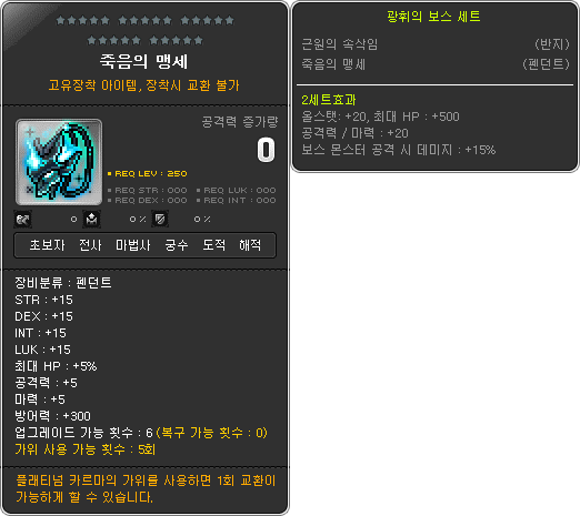 • 15 all stats, 5% HP, 5 attack/magic attack, 300 defense