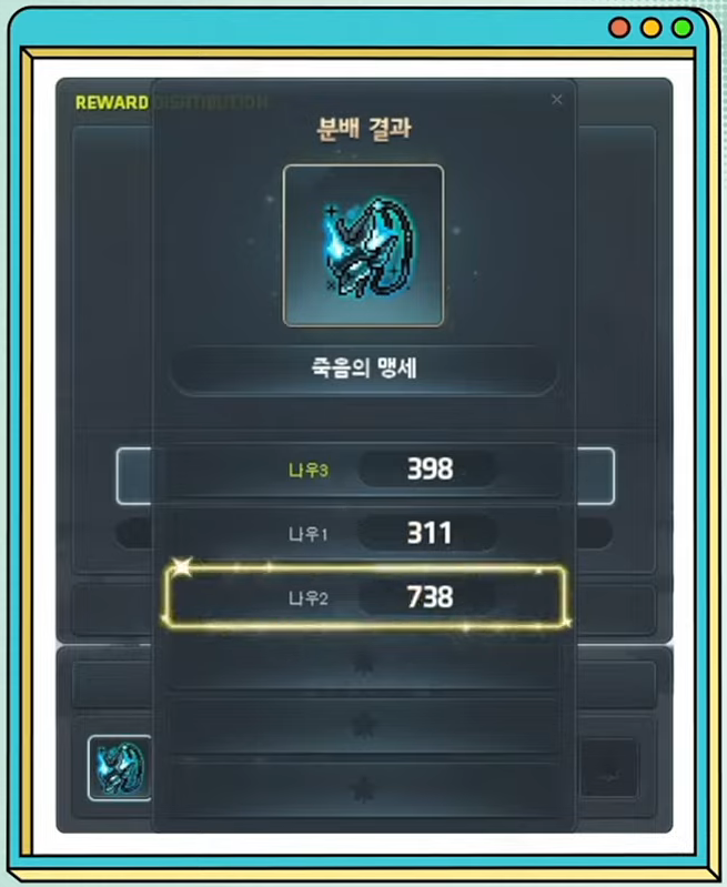 • When you create a party, you can set the Item Acquisition Permission to ‘Distribute’. When this is set, drops will not drop on the ground (except for individual drops) and instead, they will be distributed randomly between all party members. Some special items (I’m assuming stuff like Pitched Boss) will appear separately and players can choose if they want it or not. Among those players, they will roll a random number and the one with the highest number will receive the item.