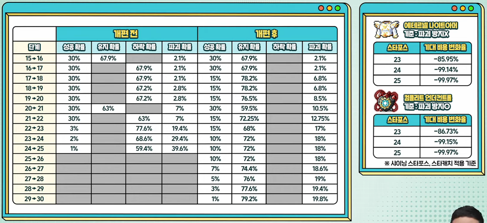 - The enhancement success rates, cost to safeguard items, and the destruction chances have been increased accordingly but the overall expected cost will not change by much.