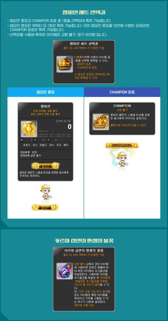 ※ The Champion Medal and CHAMPION title acquired from using the Selective Champion Set Voucher are untradable and permanent.