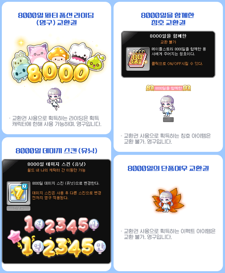 Cassandra speaks to you as MapleStory celebrates its 8000th day. Check out records from MapleStory’s past and receive various rewards!