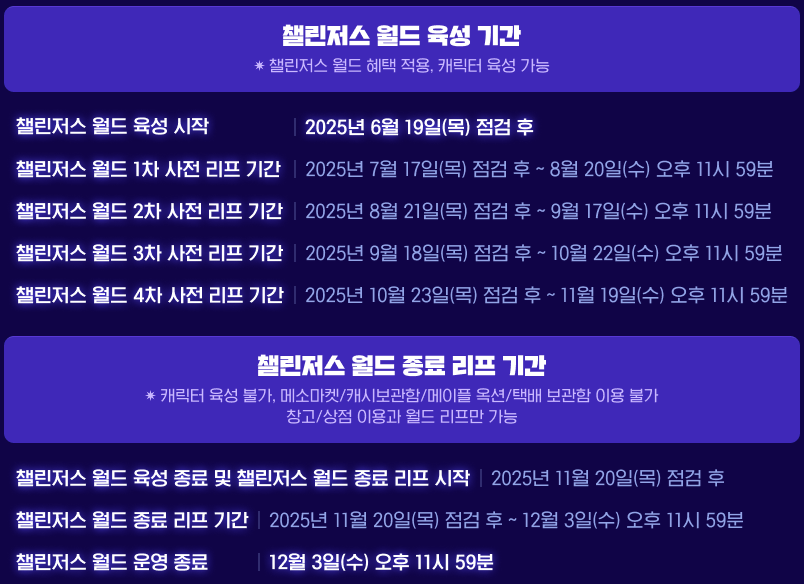 - July 17, 2025 after the maintenance ~ August 20, 2025 at 11:59 PM.
