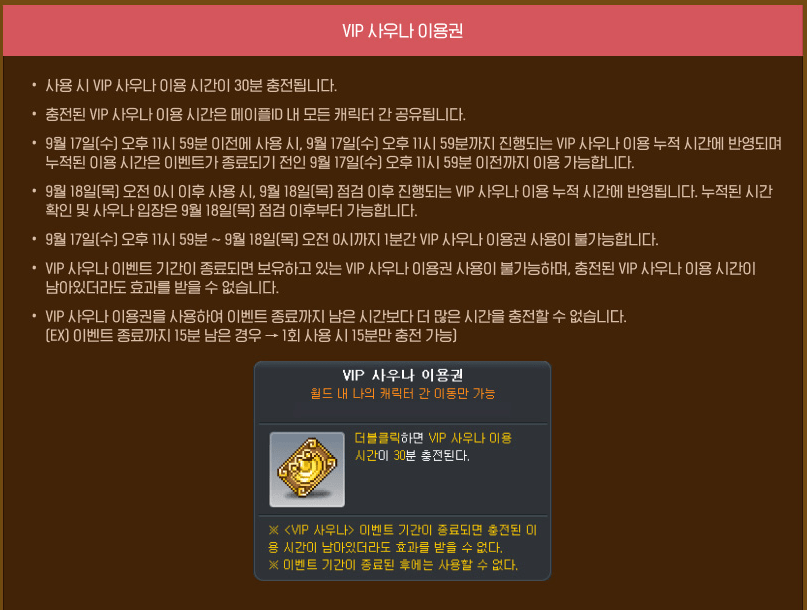 ※ The VIP Sauna Entry Tickets can only be put into storage. All other items are untradeable.