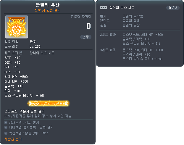 - 30% decreased destruction rate when Star Force enhancing items at 21 stars or lower
