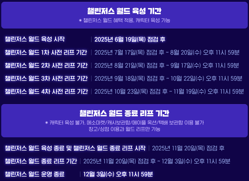 - July 17, 2025 after the maintenance ~ August 20, 2025 at 11:59 PM.