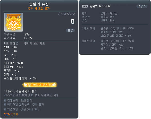 - 30% decreased destruction rate when Star Force enhancing items at 21 stars or lower