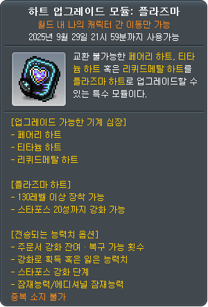 • 30% reduction on destruction rate when Star Force enhancing items at 21 or lower stars