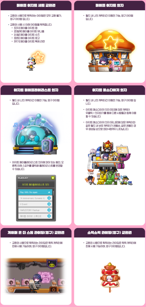 Anyways, this patch features the second set of skill changes, the new level 280 Epic Dungeon: Nightmare Paradise, the 4th Union Champion slot unlocked, as well as a variety of improvements and a new two month event themed around the Maple Hideout, the MapleStory PC Bang that Nexon will be opening in Seoul later this year.