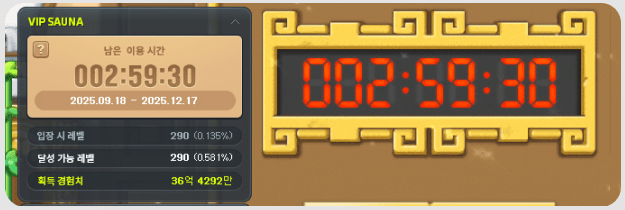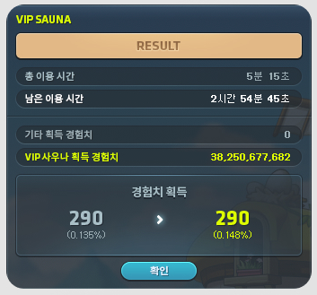When you exit the VIP Sauna Room, a UI will appear that provides information about the usage time and experience acquired.