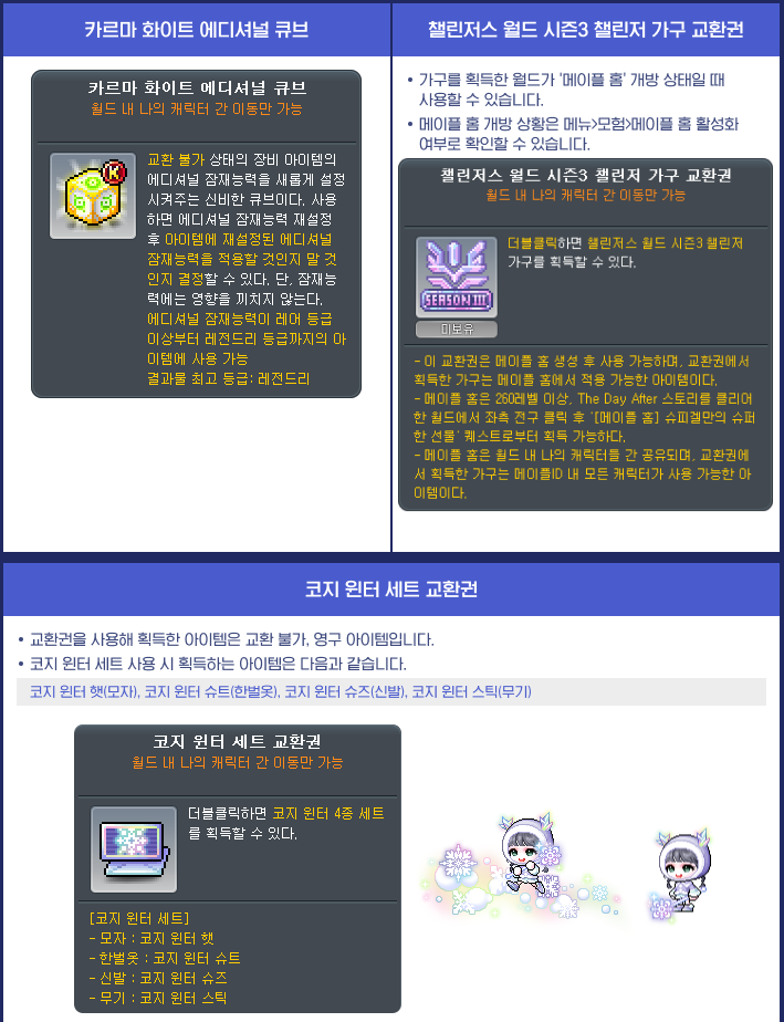 Sorry for the post being late, this patch came out a week and a half ago but since there were only a few days inbetween the KMST and KMS release, I didn’t have enough time to do a KMST post (as I mentioned before) so I had to translate everything all at once (and there was a lot in these patch notes). Then I was busy playing the actual game and other assorted holiday stuff lol.