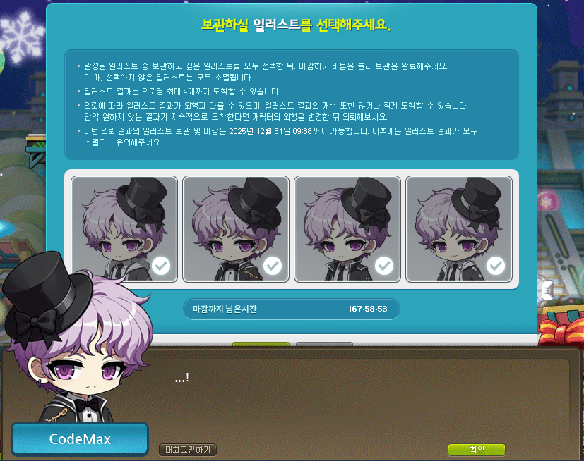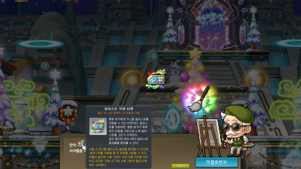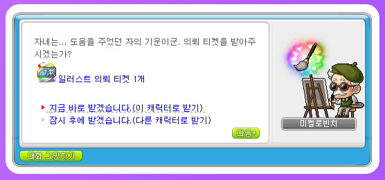 When you complete the event, you will receive 1 Illustration Request Ticket. If you don’t claim it instantly, you can receive it on another level 10 or higher character within the Maple ID through the Event List or the NPC Michelovinci.