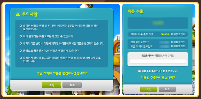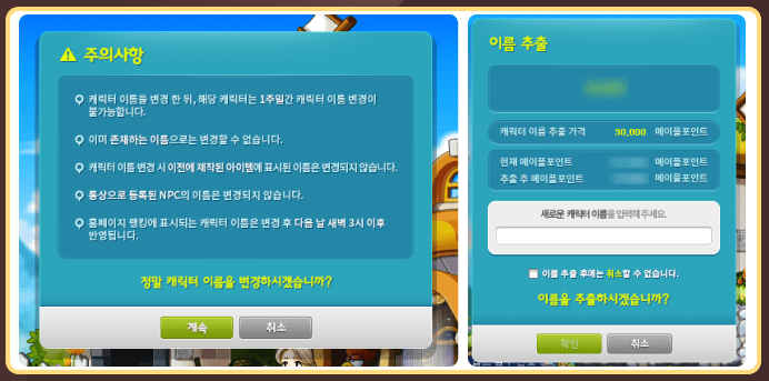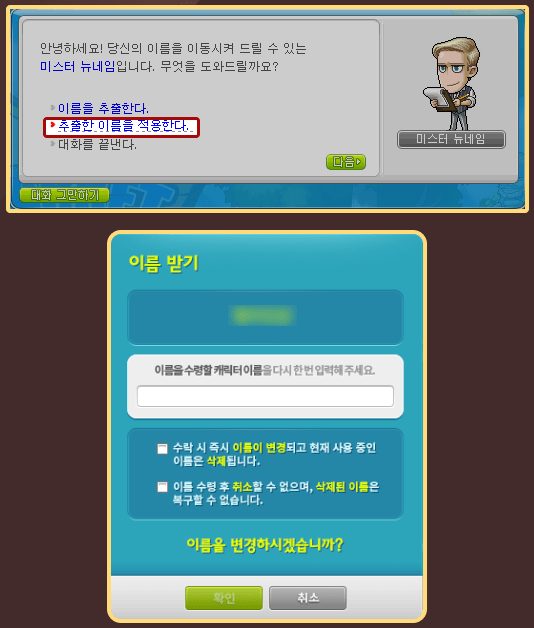 ※ After a new name is received through the New Name Auction, that character cannot change its name through Mister New Name for 1 week.