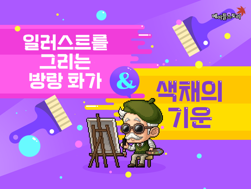 The wandering artist Michelovinci wants to understand the world by gathering the energy of various colours. Help him experience the diverse world of colours and receive Illustration Request Tickets!