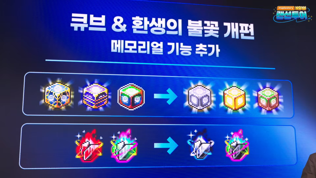 - Boss rewards will also be reorganized (in terms of cubes). They will now drop the following cubes that can only be put into storage, can only be used on level 200 or lower equipment, and will restrict the equipment that they are used on from being traded for 30 days (‘Memento’ feature).