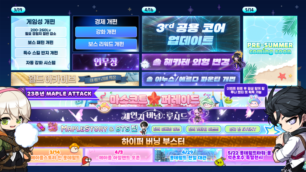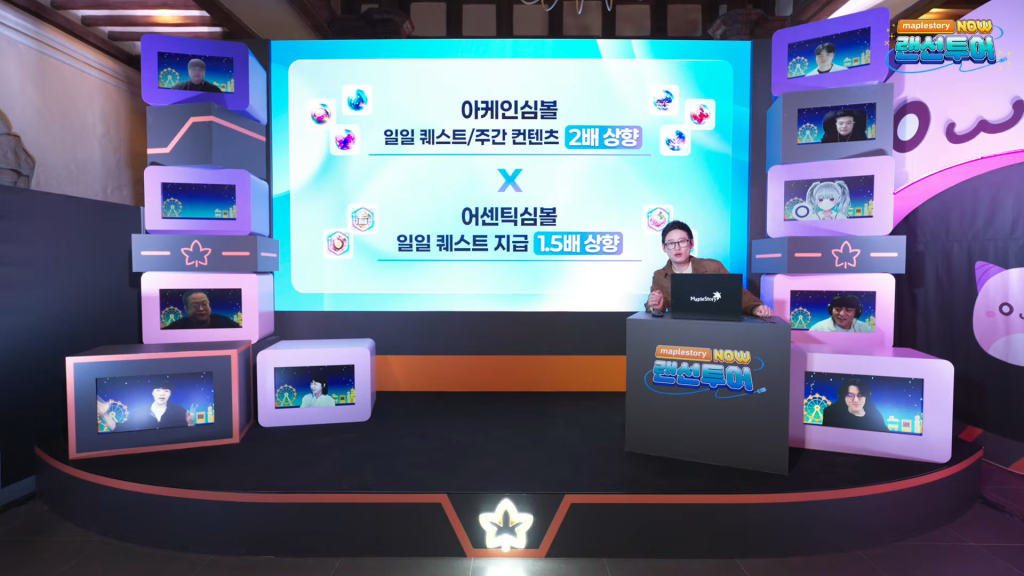 As stated previously, Director Changseop did a live stream yesterday called the Maple Now LAN Virtual Tour! He said it would be a mini-showcase and it was definitely that (or even more) with all the stuff he announced. This year’s anniversary will take place over the next three months (March, April, May) and they have prepared lots of content both in-game and in real life (such as the MapleStory theme park)!