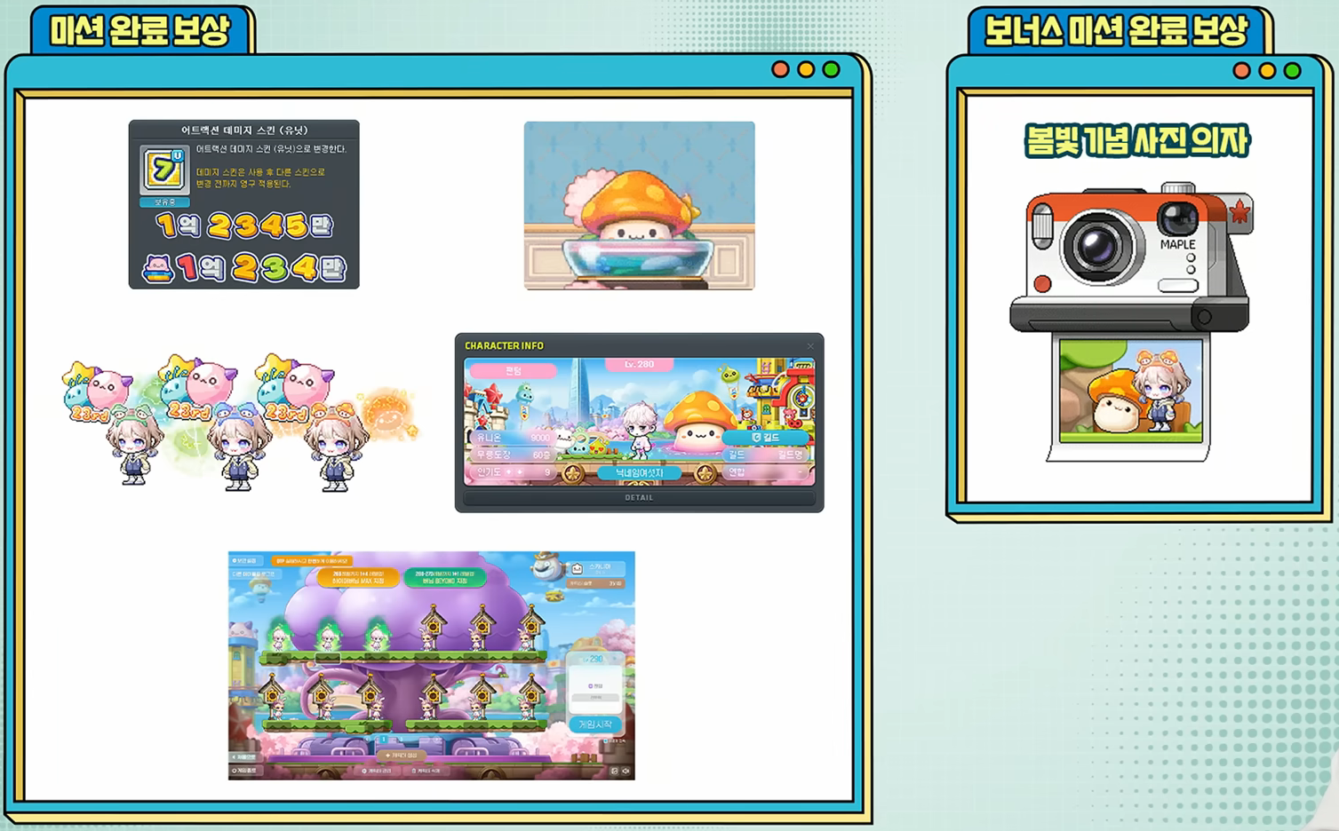 - A special week-long event to celebrate MapleStory’s birthday where you can take pictures around the event map to get cute cosmetic rewards.