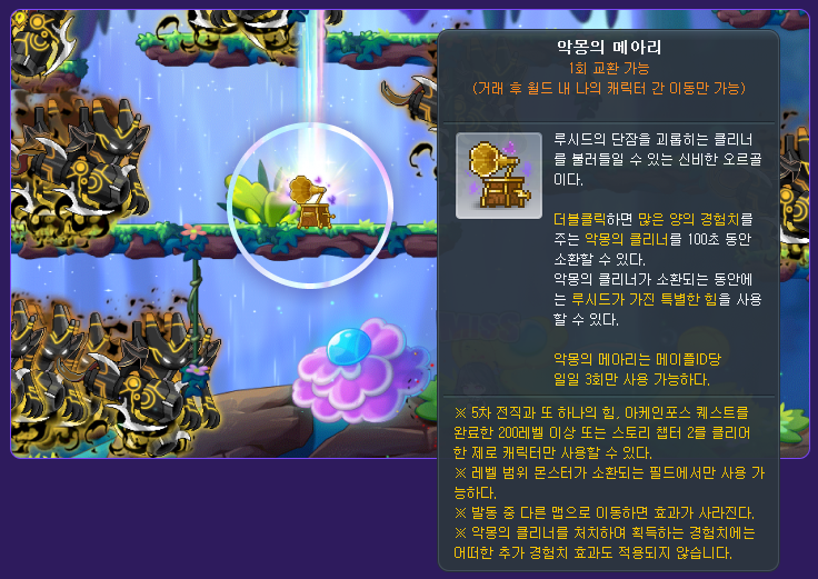 ※ ‘Nightmare Echoes’ can only be used by level 200 or higher characters (or Zero characters that have completed story quest Chapter 2) that have started the ‘Nightmare Echoes’ event and have completed the 5th job advancement and the ‘Another Power, Arcane Force’ quest.